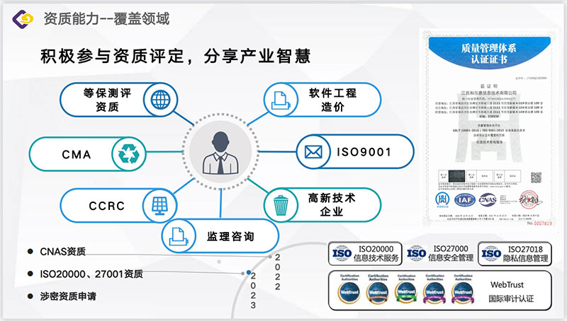 面向社会提供信息化战略方向风险、、项目建设过程风险、、信息安全风险等相关的咨询、、、造价、、、、监理、、、检验检测服务,,,,致力于帮助客户全面控制信息化风险,,,致力于让用户的信息化更简单、、、、更安全、、、、更可控。。。